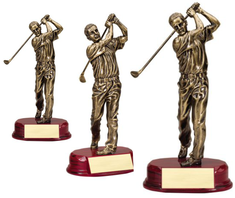 This Antique Bronze male golfer is a beautiful and impressive resin award, perfect for honoring the achievements of any male golfer. Its stunning antique bronze finish adds a touch of elegance, making it a cherished keepsake for any recipient. Crafted with high-quality materials, this award is a true reflection of excellence in the sport of golf. Available in 3 sizes.