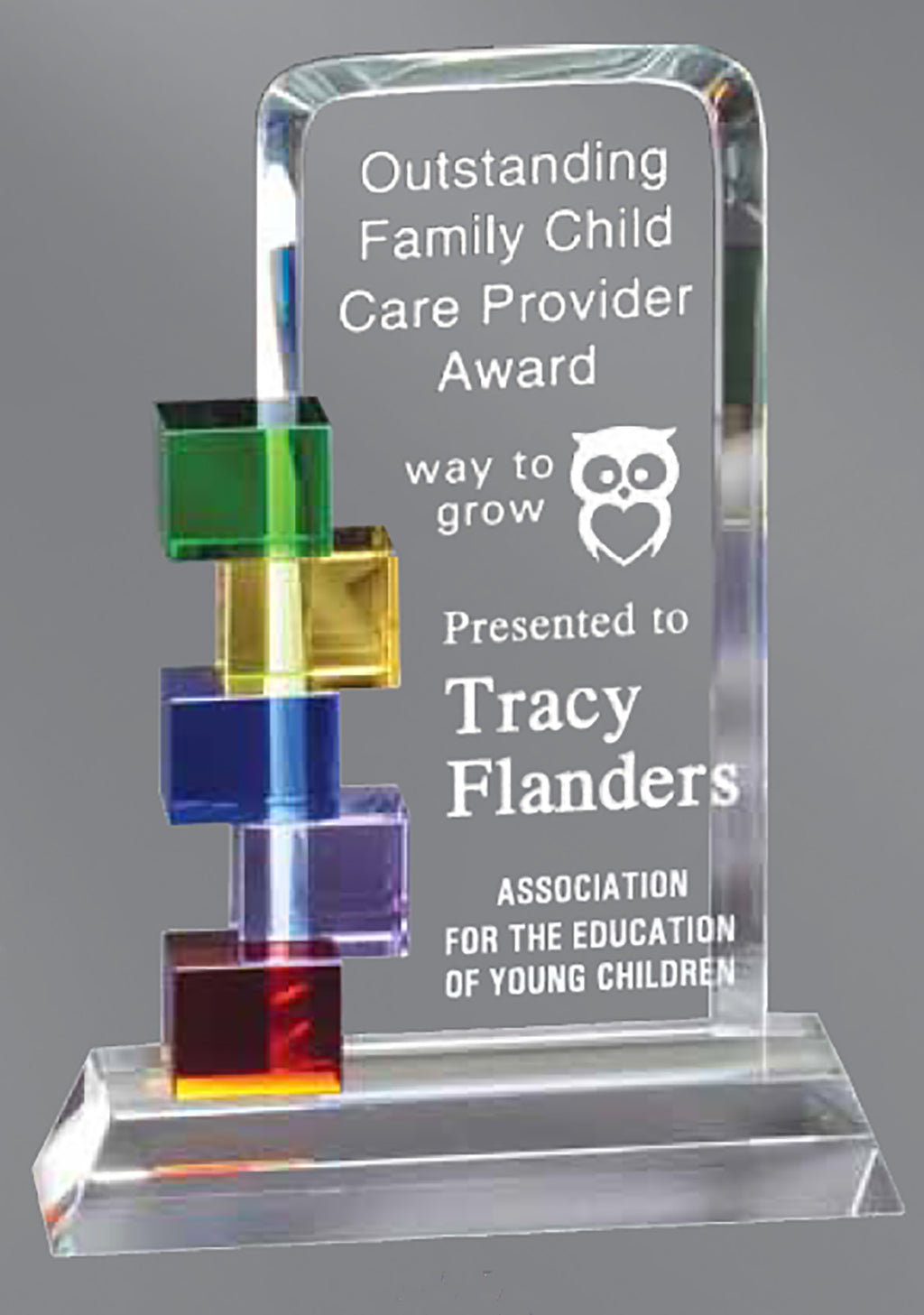 The Blocks of Success Crystal Award is produced from crystal and decorated with colorful crystal blocks. Available in three sizes. It comes in a deluxe gift box.