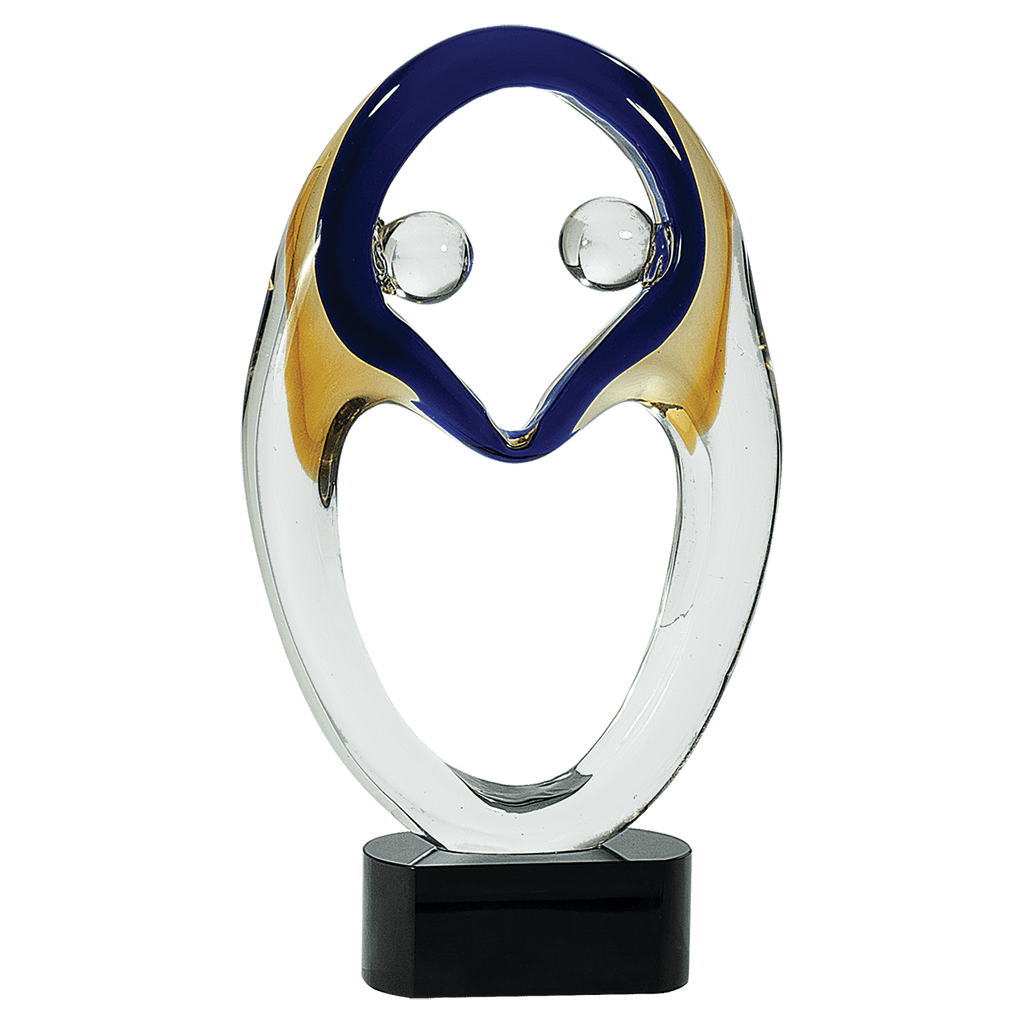 This 14" Together Art Glass on Black Base is a stunning addition to any desk or shelf. The beautiful glass sculpture is expertly crafted and placed on a sleek black base. Perfect for recognizing achievements or presenting as a unique gift. Made with precision and artistry, this award truly stands out. All of our art glass is handmade to ensure that no two pieces are identical. Every award is a true "one of a kind" and bound to impress!